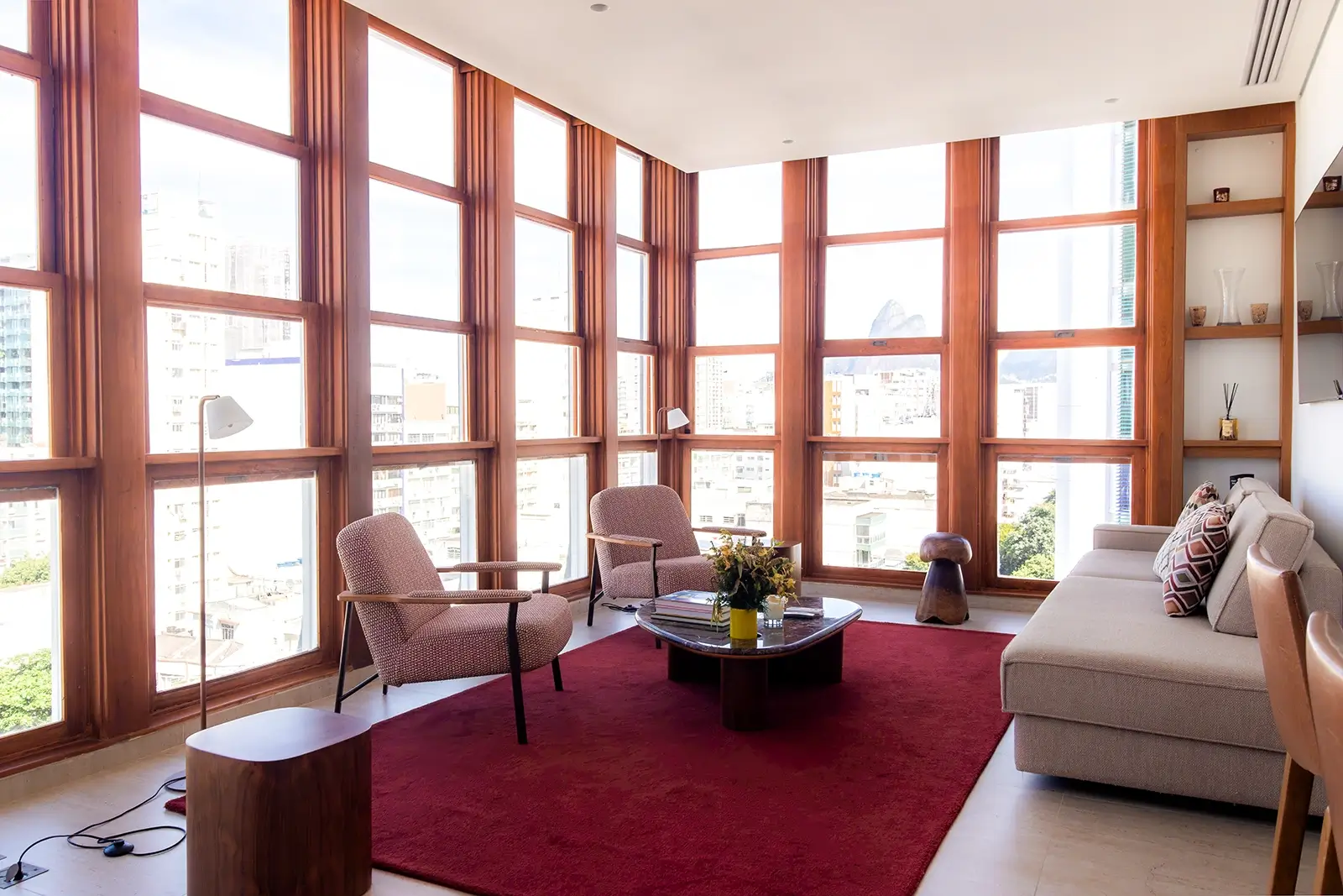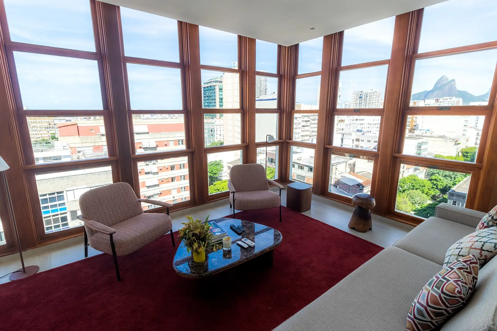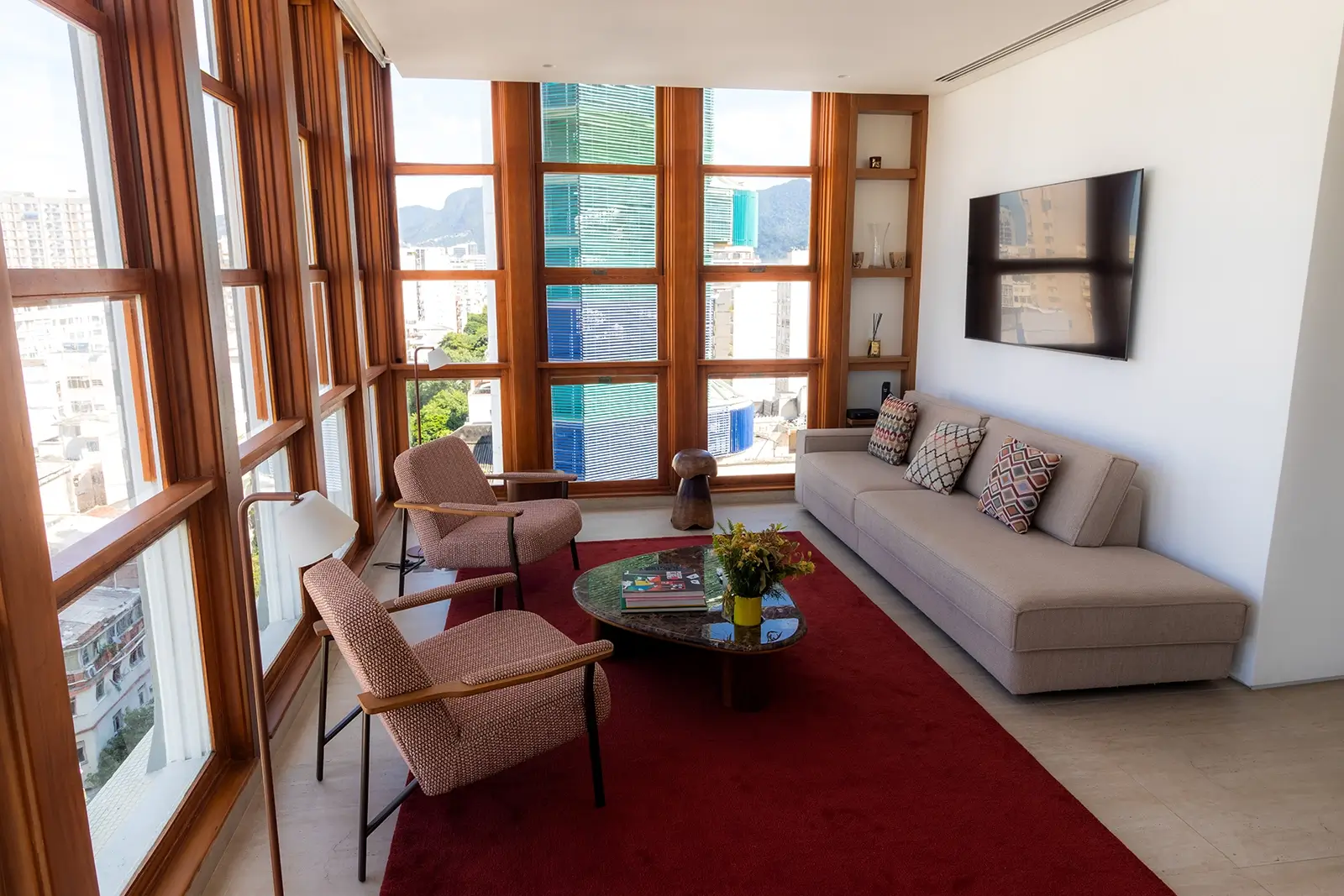 Situated in the Barão de Gravatá building — a modernist work by Sérgio Bernardes with a suspended garden designed by Burle Marx — the property combines architecture, history, and elegance in one place, further enriched by the cultural significance of having been home to renowned writer Rubem Braga.