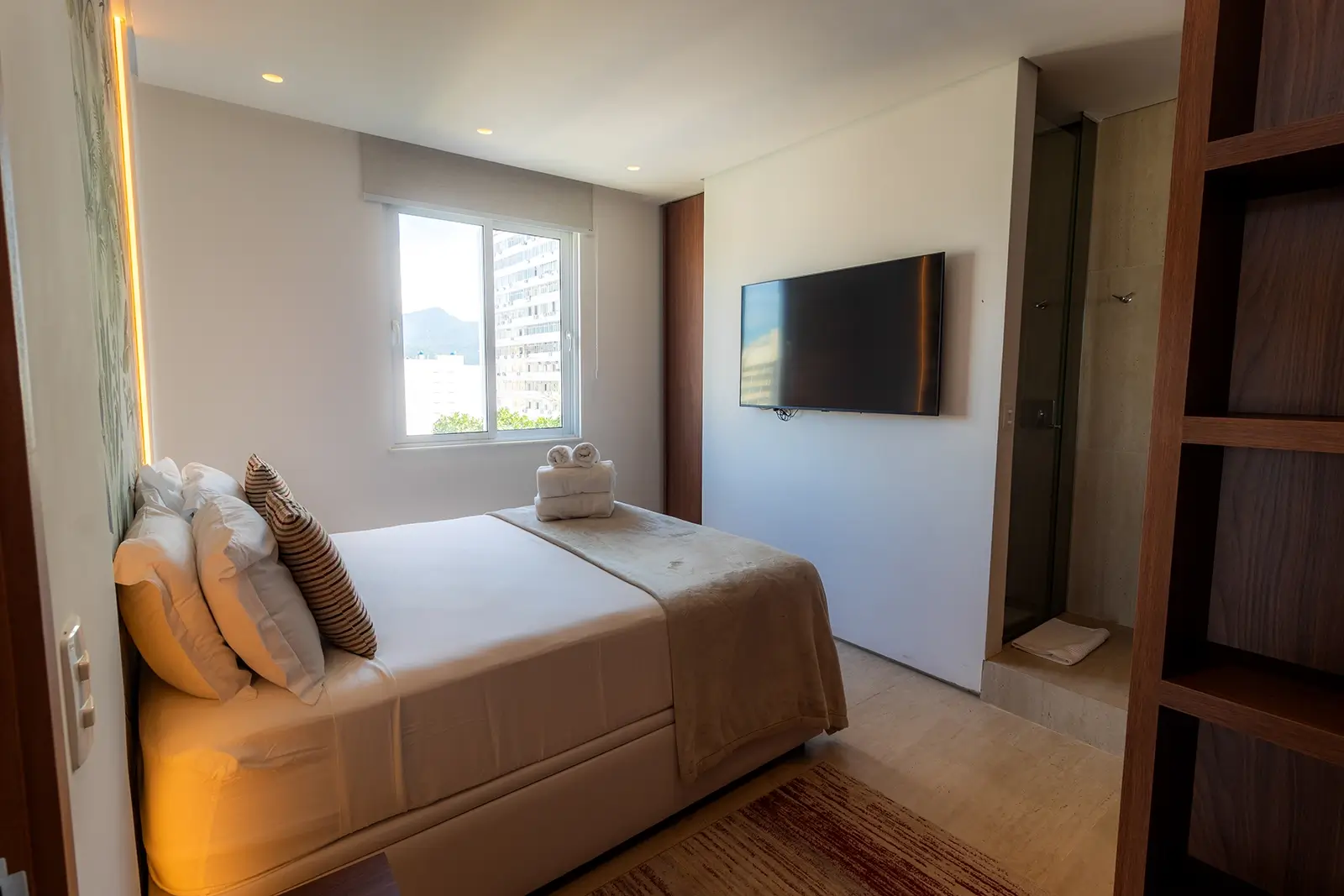 This luxurious and newly renovated apartment is located on a high floor of one of Ipanema’s most iconic buildings, offering breathtaking views of the Dois Irmãos mountains and the city. With three en-suite bedrooms, spacious living areas, and contemporary decor, it is ideal for those seeking comfort, sophistication, and an exclusive experience in Rio.